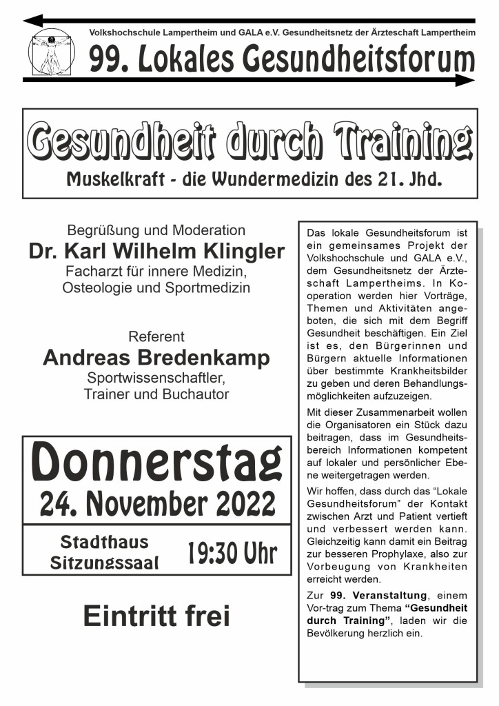 am Donnerstag, den 24.11.2022, findet das 99. Lokale Gesundheitsforum Lampertheim statt.